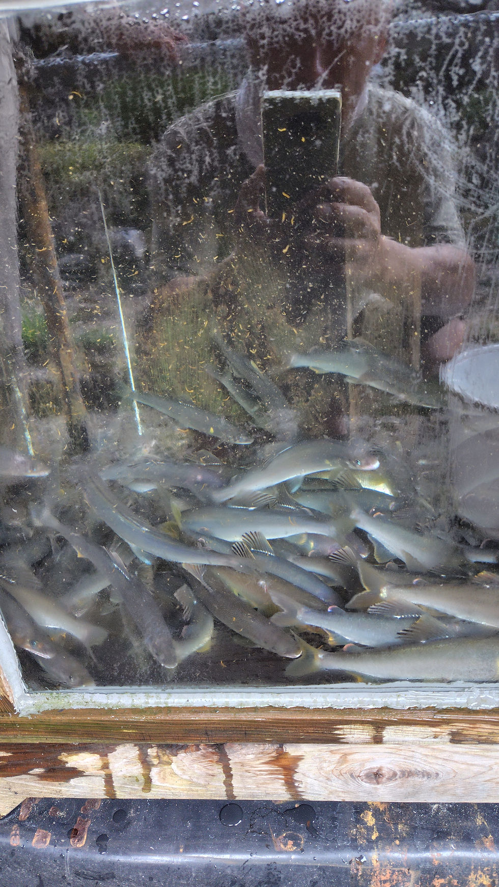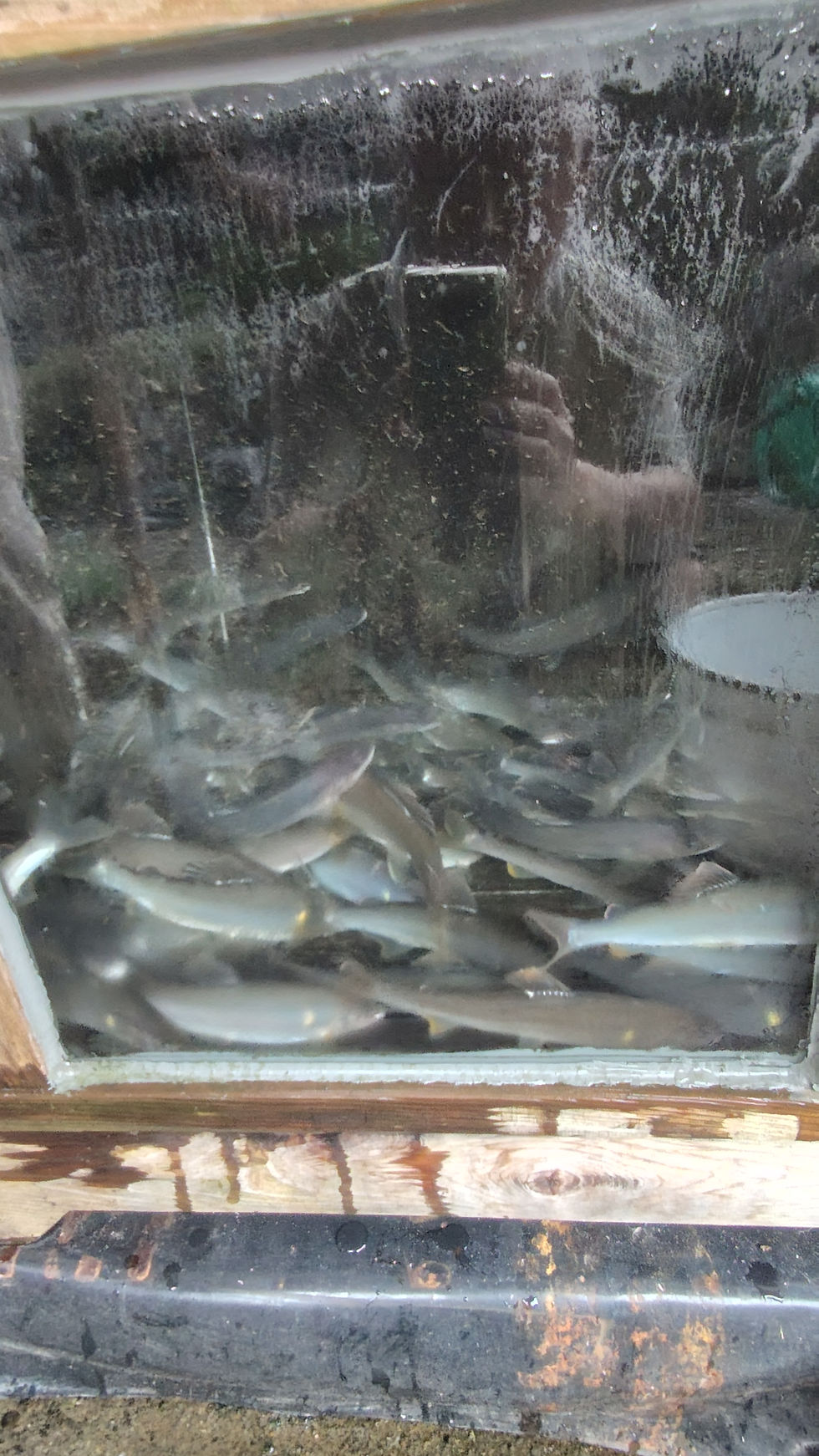 今日も全体的に釣果は良かった様でした。当店でも天然種鮎(未使用)が93尾集まりました。桶底は28cmですが、25cm程度の天然種8尾を入れた写真です。桶底の約2/3程度が鮎で覆われています。当店水槽の中に天然種鮎93尾います。